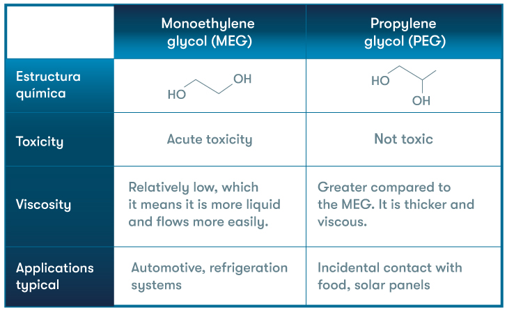 It is important to select the right type of glycol for a specific application, taking into account the specific properties and requirements of the application. Monoethylene glycol and propylene glycol are two chemical compounds commonly used in the manufacture of antifreeze. Although both have antifreeze properties, they have significant differences in terms of structure and properties that may affect their performance in specific applications. Some of the differences are: